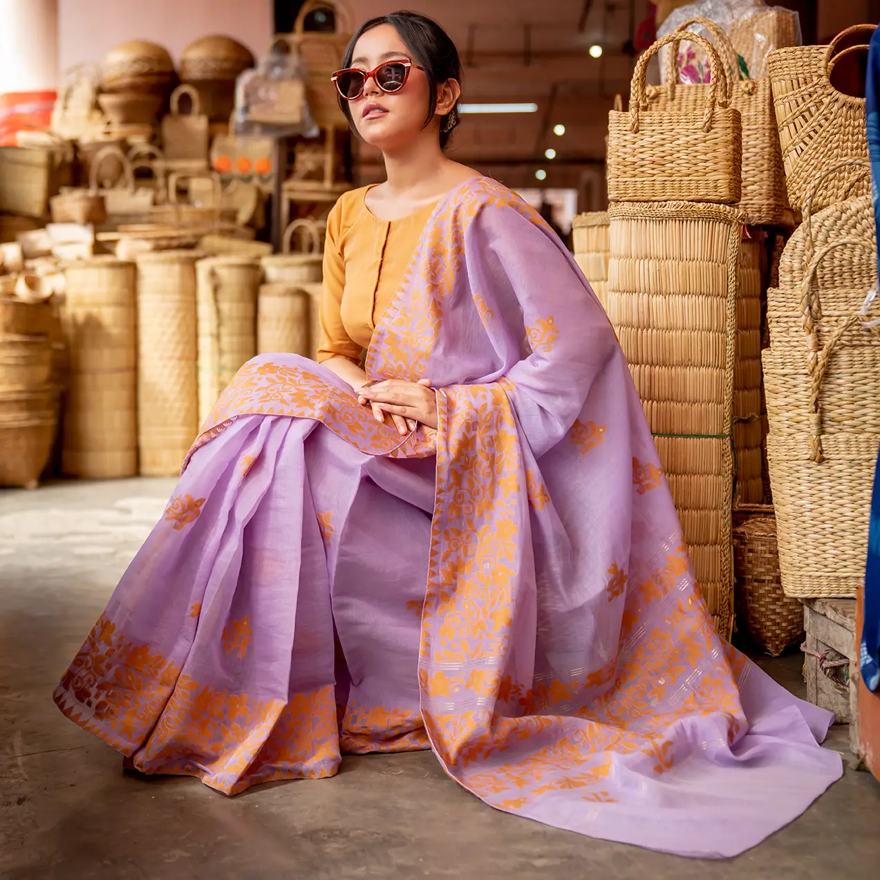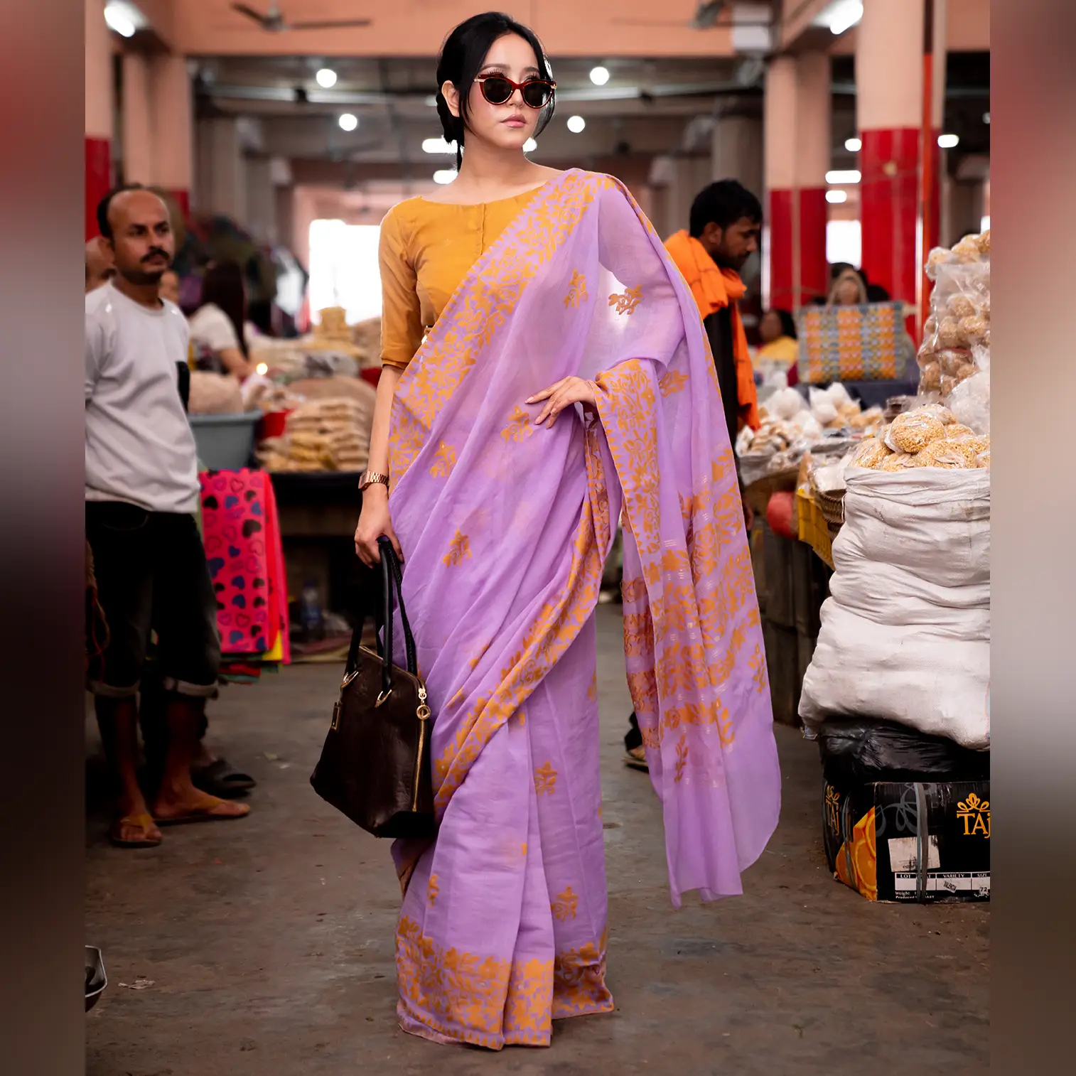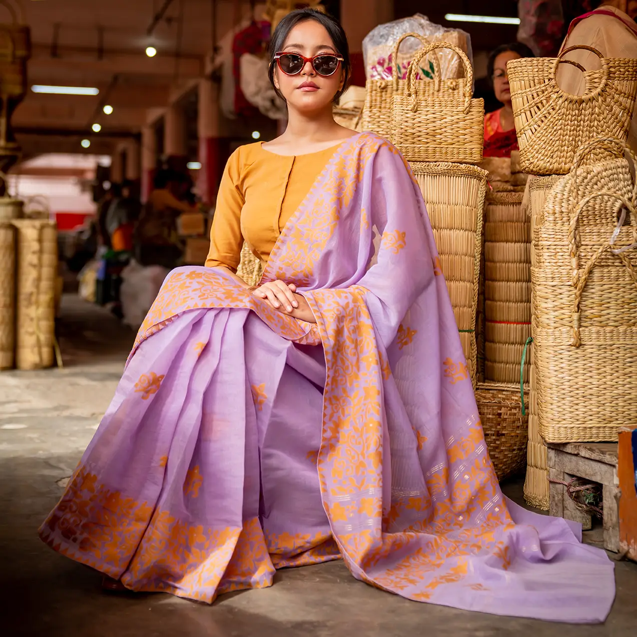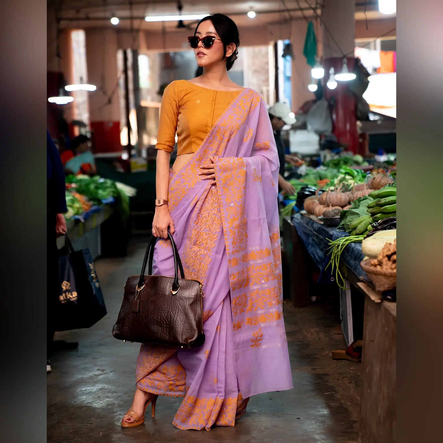 This saree is woven magic on a cotton blend canvas—think breathable, lightweight, and perfect for when you want to look like a diva without sweating buckets.